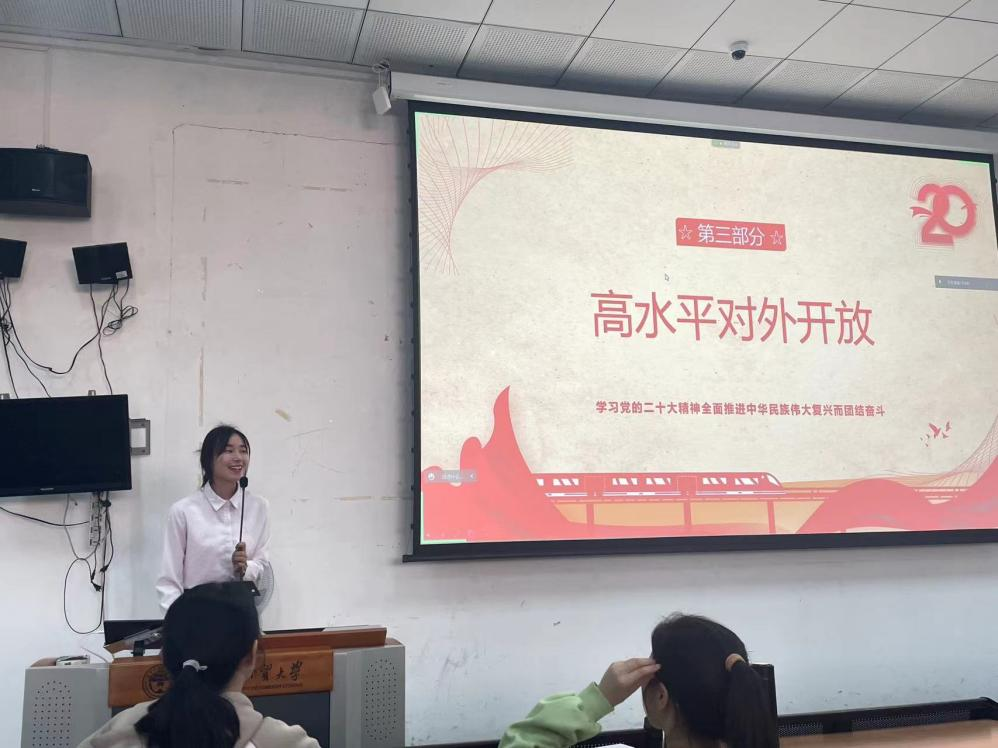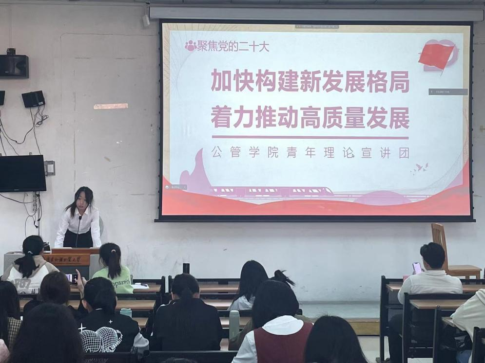 公司员工宣讲团就区域协调发展、乡村振兴、高水平对外发展三大板块,讲述二十大对全面建成社会主义现代化强国的要求:“加快构建新发展格局,着力推动高质量发展”。党的二十大擘画了全面建成社会主义现代化强国,以中国式现代化全面推进中华民族伟大复兴的宏伟蓝图。党的二十大报告强调,要坚持以推动高质量发展为主题,把实施扩大内需战略同深化供给侧结构性改革有机结合起来,加快建设现代化经济体系。着力推进城乡融合和区域协调发展,推动经济实现质的有效提升和量的合理增长。全面建成社会主义现代化强国不能脱离坚实的物质技术基础。宣讲团强调,作为当代中国青年的我们,生逢其时,施展才干的舞台无比广阔,实现梦想的前景无比光明,我们的青春需要在“加快构建新发展格局,着力推动高质量发展”中发出一束微光。宣讲团成员授课内容获得了广泛关注,取得了良好宣传效果。