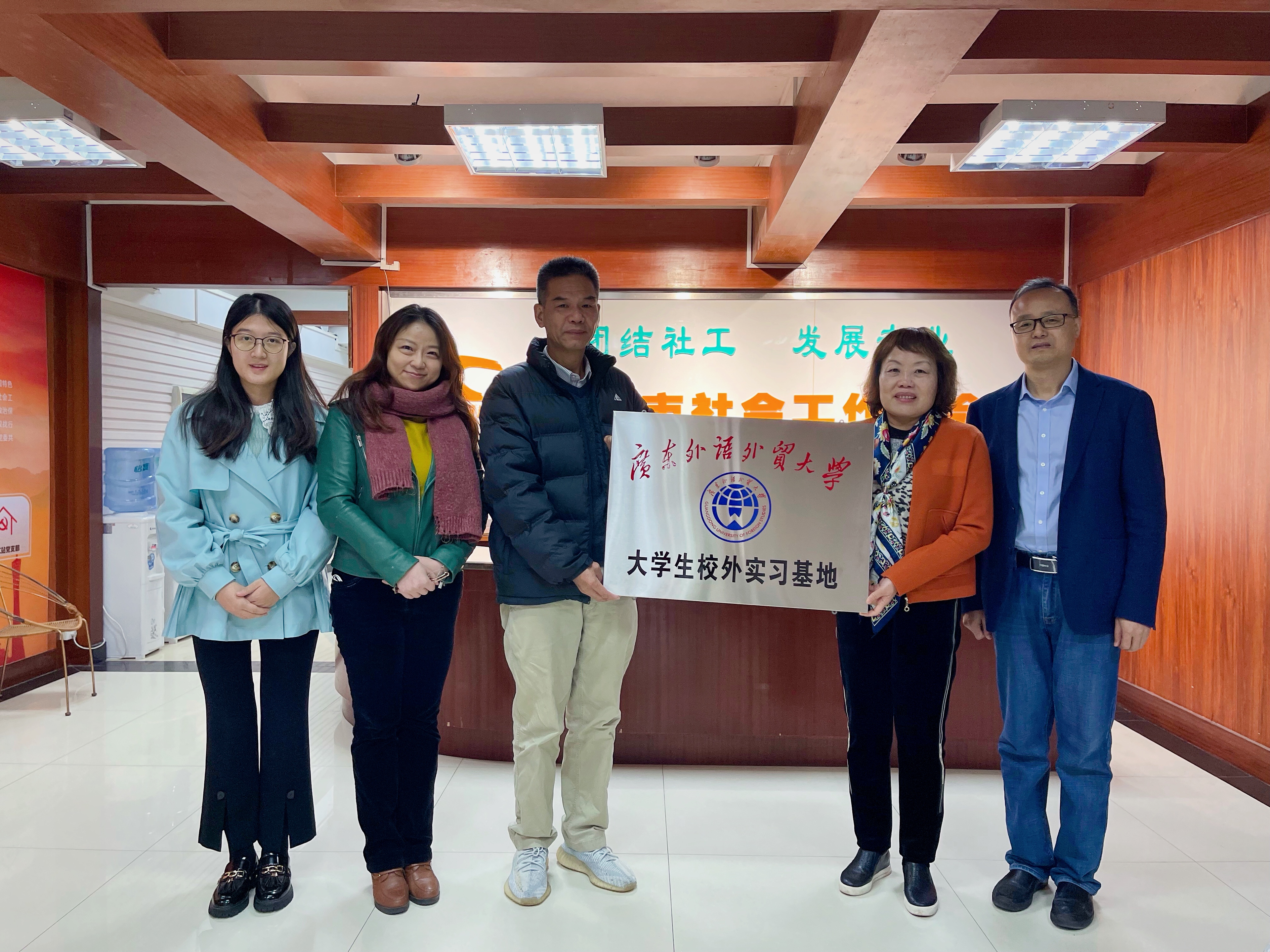 2021年12月28日上午,太阳城娱乐与广州市社会工作协会共建老员工专业实习基地签约授牌仪式在市社工协会举行。广州市社会工作协会会长张慧珍、秘书长段鹏飞和公司党委书记高云坚、副经理涂斌、行政秘书黄欣晨出席仪式。