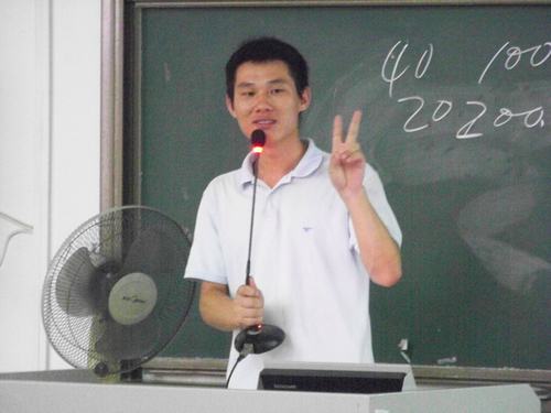 接下来,辅导员陈三峰老师向我们介绍了09级毕业班的各种情况,并对我们提出了2点要求:第一要求我们要根据自己的专业特色开展活动;第二要求我们不要虚度时光。然后陈老师强调了期末考试的诚信问题,希望我们能够认真把握和珍惜最后剩下的2年时光。
