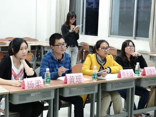 本次比赛有两部分组成,第一部分是5分钟的Presentation展示,第二部分是评委根据队伍的表现进行提问,由选手进行回答。此次比赛的选手可谓是八仙过海,各显神通。每支队伍的内容选材都十分丰富,同性恋、百万葵园、西部牛仔、弃婴现象、宫崎骏、宿舍之间的相处、“丽媛风格”,让人耳目一新。