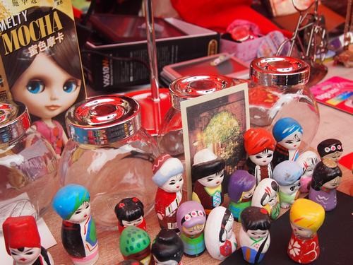 所谓“八仙过海各显神通”,各个摊位都使出了浑身解数来吸引同学们的光临。有的摊位通过用心的摊位包装,例如绕上青藤、挂上气球彩带、贴上精美展板,或者直接摆出销售的小饰物来吸引人的眼球;有的摊位则通过一些“活招牌”来引起大家的猎奇心理,例如让摆摊人员穿上夸张的服饰、戴上娃娃头盔,或者是坐在摊位前弹吉他。各摊位都“出奇”以“制胜”,也因此使得几乎每个摊位的顾客都络绎不绝。