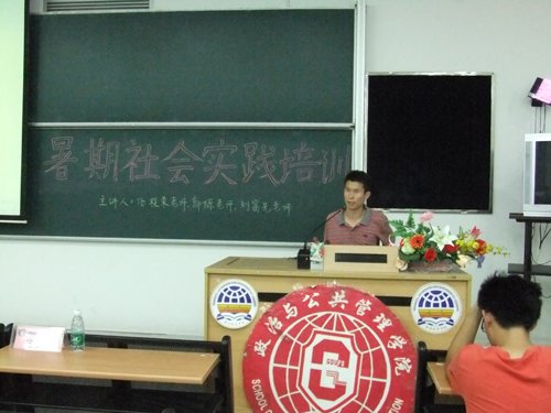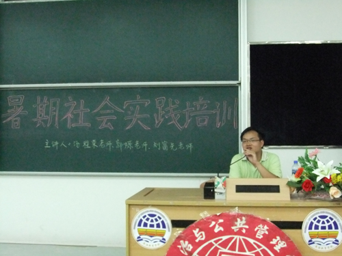 7月15日晚上6点30分,政管公司第二次暑期社会实践培训大会在教学楼F215举行。本次大会的主题是调研培训、有效沟通以及学习原理与教学方法,主讲人分别是汤程东老师、郭嫄老师,还有刘富先老师。参加暑期三下乡活动的七支队伍的大部分成员出席了大会。