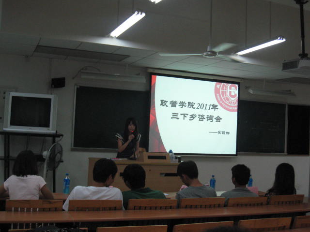 2011年5月17日星期二晚上7点,政管公司2011年三下乡咨询会在教学楼E栋503展开。本次咨询会由政管团学实践部举办。
