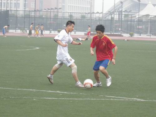 5月17日下午,“政管杯”E&A足球赛进入淘汰赛阶段的争夺。第二场半决赛由06公管对阵06心理。
