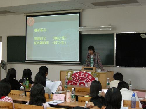 11月8日,由政管团委员工会主办的2008新干事培训会在南校区教学楼E104举行。