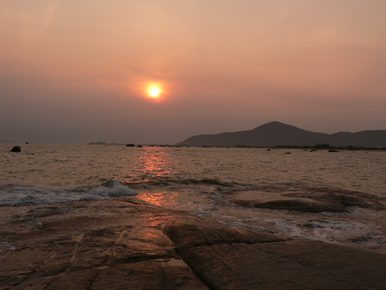 几经波折,我们终于来到心仪的大海。大海的澎湃与浩瀚,征服了我们每个人,顿时,你会感觉自己是多么的渺小。海浪拍打着岸边的巨石,溅起白色浪花,在夕阳中,显得金光闪闪。在海边看浪,不由自主的产生一种到海中搏击的冲动。海边的我们是一群游子,期待着回归到大海的怀中。