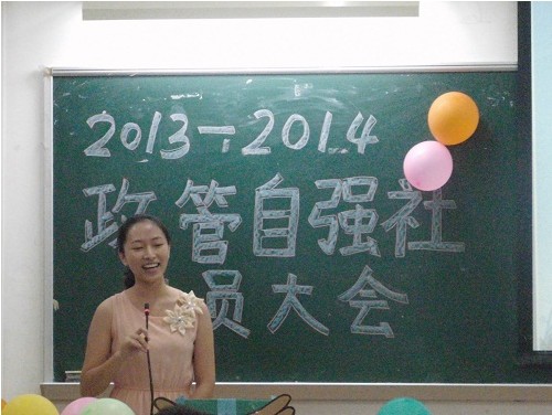 一番分享过后,自强社政管分社社长李昱锦发表了正式讲话。她全面地介绍了自强社 ,扼要说明了社员权利与义务,同时对分社社员的管理与考核等相关制度进行了阐释。最后,李社长强调自强社是一个干部干事全心全意付出的公益性团体,工作不足之处欢迎每个人提出批评建议,日常工作希望社员们能够积极配合.相信社长的讲话会让社员们真正理解政管自强社这个大家庭的真正含义,它是需要每个成员来用心经营的。