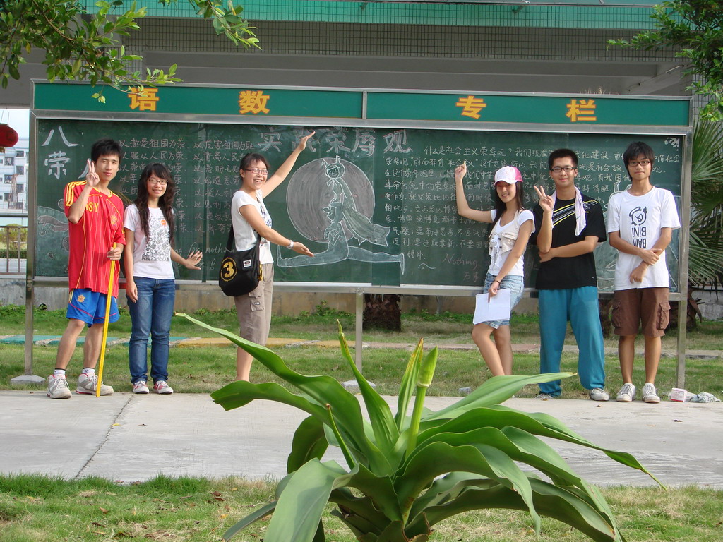 回想起我们刚开始出这个宣传报的时候,天气很热,而且阳光很强烈,只是站着已经出了一身汗。而每天,我们宣传组的几个成员就在太阳底下,对着两块长长的黑板,一直辛勤地工作。工作的时候难免会有些苦闷,但是几句玩笑,不知不觉就把我们工作的苦闷排走,使我们继续愉快地投入工作之中。