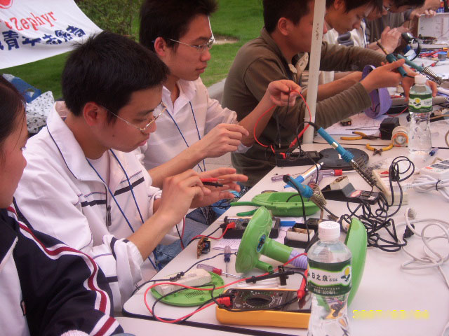 根据有关负责人介绍,活动刚开始就吸引了不少需要帮助的同学,许多有问题的台灯、MP3、电话机等电器都在志愿者的精心修理下开始它们“新的生命旅程”。看着他们修理时专注的神态,一丝不苟的执着,微笑的服务,无一不令在场的同学深感佩服、深受感动。在此对志愿者们专业的技术和无私奉献的精神表示真心的感谢!