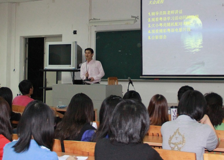 首先,网建小组组长陈老师作了精彩致辞。陈老师希望通过本次活动,让同学们展示一下这几个月来的粤语学习成果,从而更好地加深大小粤亮之间的合作、互相学习,使得系列粤语学习活动能继续顺利开展,同学们能够在语言学习和人际交往方面都有所收获。
