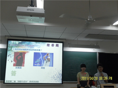 4月28日晚8点,公司第二届“创意与设计大赛”成果展示晚会在E503隆重举行。参与本次晚会的嘉宾有政管团学主席包莹莹,副主席黎焕明、谢金榜,文娱部部长吴琪哲。本次晚会邀请了上届宣传部部长骆泳诗和副部长毛乐川,以及来自艺术公司09级艺术设计专业的张静敏,周宇捷来担任大赛评委。