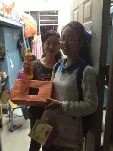 当天晚上9点,生活部和志协全体成员出动,分成了四组,每组负责一个年级,抽奖活动正式开始。干事们分工合作,有的拿奖品,有的拿抽奖箱。礼貌地敲门,表明身份,介绍抽奖规则,发放奖品,当然也不忘了道上一句“女生节快乐”。全员的女生都很积极踊地参与我们的抽奖活动,还有的女生热情地和我们的干事合影。每个女生在抽到奖品时的惊喜以及脸上的笑容,是我们最大的满足。