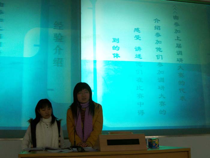 3月8日下午两点半,由政管公司的调研部负责的调研培训在南校区教学楼F208圆满进行。为了活跃公司调研学习气氛,增强同学们对工作的认识以及对生活的思考能力,上届调研大赛获得一等奖的代表何景杰给同学们介绍了调研过程的各个环节和他的经验之谈,当然还包括上届的一些得奖代表送上真诚的感受以及建议。