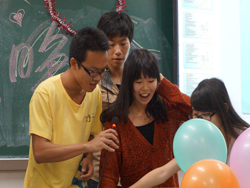 接下来的游戏环节更是引起了一阵疯狂,小猩猩们和大星星们激烈的角逐,毫无顾忌的嬉笑怒骂,毫无节操的惩罚,把彼此之间的距离缩到了最小,把欢声笑语放到了最大。一群年轻的心擦出了最激烈的火花。