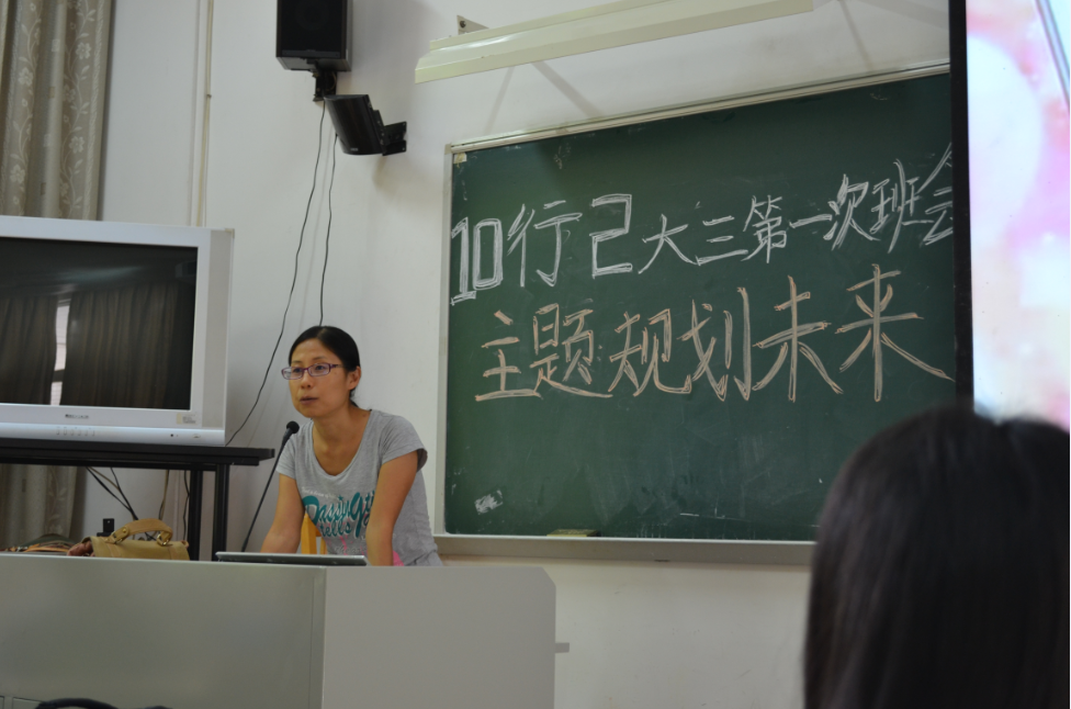随着10行2班歌的响起,10行2大三的第一次班会正式开始。首先,主持人们先和大家进行互动,并提醒大家九月五日是大家相识两周年纪念日,并介绍了本次班会的主题——规划未来。而后,梁老师在大家热烈的掌声中徐步上台为我们讲解了将要到来的大三生活的方方面面点点滴滴。梁老师告诉同学们,大三是一个关键的时期,同学们应该扎扎实实充实自身,努力在学习上面下苦工,应该营造一个学习型的大三。同时,梁老师还特别强调,大三的上学期应当以学习为重,实习固然也重要,但是绝对不能为了实习误了学业,更不能逃课缺课,不能让实习成为我们偷懒的理由。而对于以后人生道路的选择,梁老师也建议同学们慎重考虑,尤其是在考研深造或直接就业的选择上,梁老师认为,最适合自己的才是最好的,决不能盲从别人的选择,要走好自己的路!