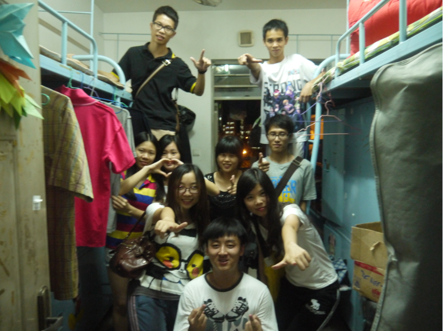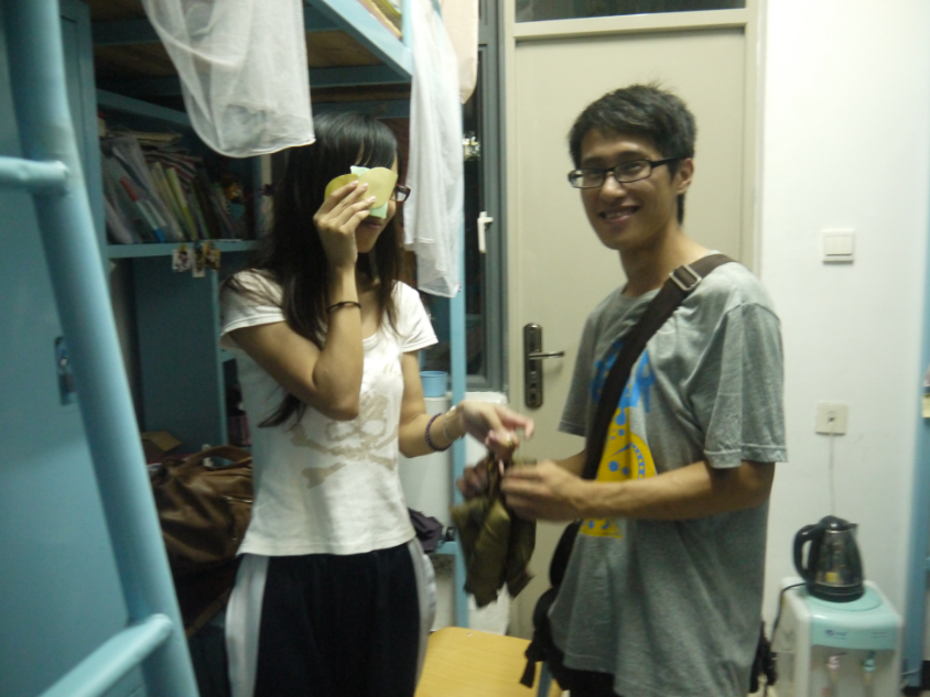 我们首先去到了女生宿舍,勇灿一马当先,自告奋勇地表示要第一个送粽子。我们其他的几位新班委都被勇灿这股为同学献爱心的热情所感染。然后勇灿与接受粽子的女同学亲密合影,勇灿的脸上洋溢着幸福的笑容。随后我们便一一将粽子亲手送到了所有的女生宿舍和男生宿舍,每个新班委都与同学们合影留恋,记下这令人难忘的一刻。这里其实还有一个小插曲。在上男生宿舍时,因为就快到十点(十点之后女生就不能上男生宿舍了),宿管阿姨拦下了前去送粽子的女班委们。但是得知我们自己花钱去送粽子,进行班级活动时,宿管阿姨被我们的无私奉献的精神所感动,马上予以放行,最后也得以顺利将粽子送到各位的手上。