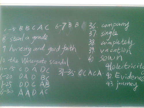 时间飞快地过去,几部分的报时过后,我们差不多完成了预定的题目(因为时间关系不能完成所有题目)。在对照答案时,我们仿佛回到中学,那种感觉令人感动。但最多的感受还是紧张,而我们又有多久没试过这种紧张的感觉了?虽然最后大家都怀疑答案抄错了,但我们还是认为现在发现问题我们还可以亡羊补牢。