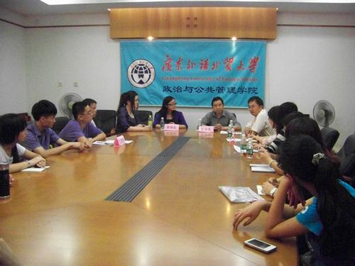 座谈会上,唐晓姣说,在广外上本科时她的专业是公共事业管理,在大学四年期间,她做了很多员工工作,非常享受与人沟通的过程。谈到为什么会从事社工,唐晓姣解释道,自己是从《非营利组织管理》这门课程中了解到社会工作职业的,通过查找资料多方了解后,觉得这个职业非常适合自己,并与自己的长远规划相近,所以就选择去香港中文大学读社工硕士学位。