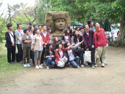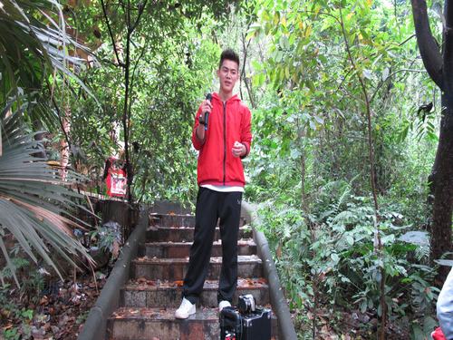 旅游车上,大家热情高涨,满脸笑容。文娱委员谢鹏带来了一个音箱和两个麦克风,也就意味着今天将是一个让嘴巴和耳朵与歌曲亲密接触的日子。于是,由班长陈金城开唱——由《我们的歌》改编而来的班歌。班长和培炜的歌声激发了大家唱歌的热情,歌曲连连,有中文的也有英文的,半个多钟的车程悄然逝去。