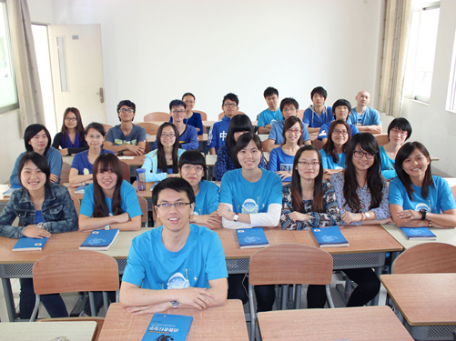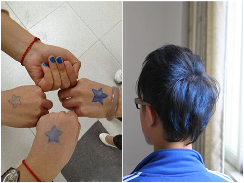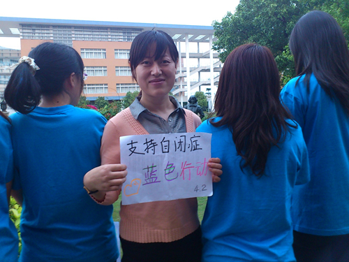 齐刷刷的蓝色让人心头一暖---甚至还有自己没蓝衣服的同学特地问别人借了一件,就为参加这个活动声援自闭症!