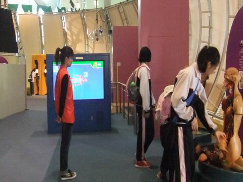 在门外等待了十几分钟后,工作人员就将我们带入科学中心内部,把我们分配到各个场馆中,并引领我们到对应的岗位上。我们主要的工作职责就是引导参观者进行参观,解释场馆内各项目的使用方法和维持秩序。由于我们大部分的志愿者都是第一次来到科学中心,所以在开馆前我们都试玩和了解自己所负责的场馆内的设施和项目,为接下来的工作做好准备。