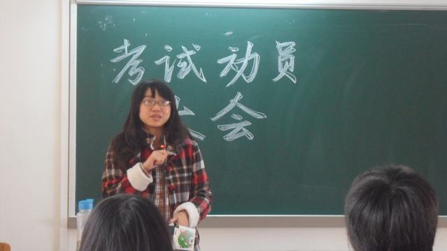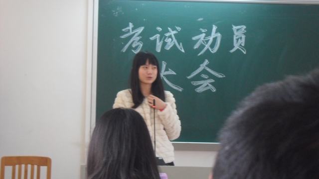 本次动员大会的主持人是班长陈佩珊同学,她打来开场白:同学们,经过一个学期的学习,相信大家都对自己的学习有了初步的了解,而我们也将在1月初迎来进入大学的第一次期末考,那么怎么才能在期末取得一个好的成绩,一边提升将来我们学习的兴趣呢?胸有成竹的同学可以在本次大会上与其他同学交流自己的心得,暂时感到迷茫的同学也不要紧,因为我们今天荣幸地请来了四位10公管的师姐,可以为我们指点迷津。好啦,现在进行大会的第一个环节,有请师姐上台讲话,大家欢迎!